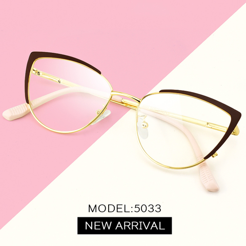 Armação de óculos feminina doisyer, armação de metal de olho de gato para mulheres, bloqueio de luz azul 2022
